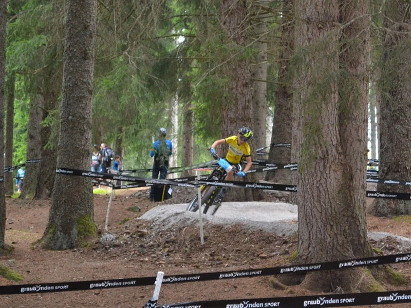 Die Bikestrecke liegt im schönen Pifal, sie beinhaltet Sprünge, Steilwandkurven, Steingarten und Wellen-Mulden. Es kann zwischen der kleinen Runde (ca. 0.900 km) und der grossen Runde (ca. 1.7 km) gewählt werden. Die grosse Strecke weist wenige Höhenmeter auf. Durch die vielen Richtungswechsel ist sie jedoch intensiv und bietet kaum Erholungsphasen.Die kleine Runde ist eine permanente Strecke und kann während des ganzen Jahres (sobald sie schneefrei ist), befahren werden. Start und Ziel befinden sich direkt bei der Feuerstelle welche zum Verweilen einlädt.