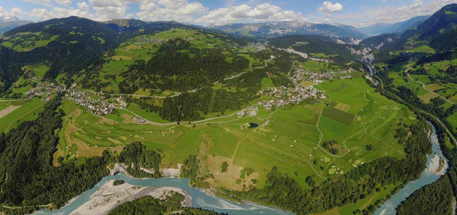 Die Ebene von Sagogn und Schluein liegt 700 m ü. M. auf einer Terrasse über dem Flusseinschnitt des Vorderrheins. Die Anlage ist so konzipiert, dass er die Ansprüche eines Turnierplatzes erfüllt, sich aber auch durchschnittliche Golfspieler und Anfänger wohl fühlen. Anspruchsvolle Längen und abwechslungsreiche Modellierungen von Fairways und Greens werden gute Spieler herausfordern.