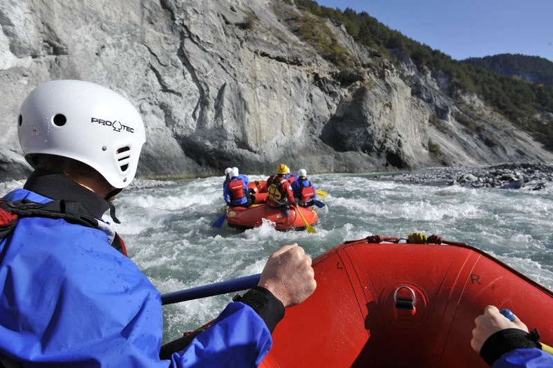 Rafting - Zusammen im Boot: River Rafting ist ein fröhliches Erlebnis für alle und eine wundervolle Art, die Rheinschlucht aus einer anderen Perspektive kennen zu lernen.