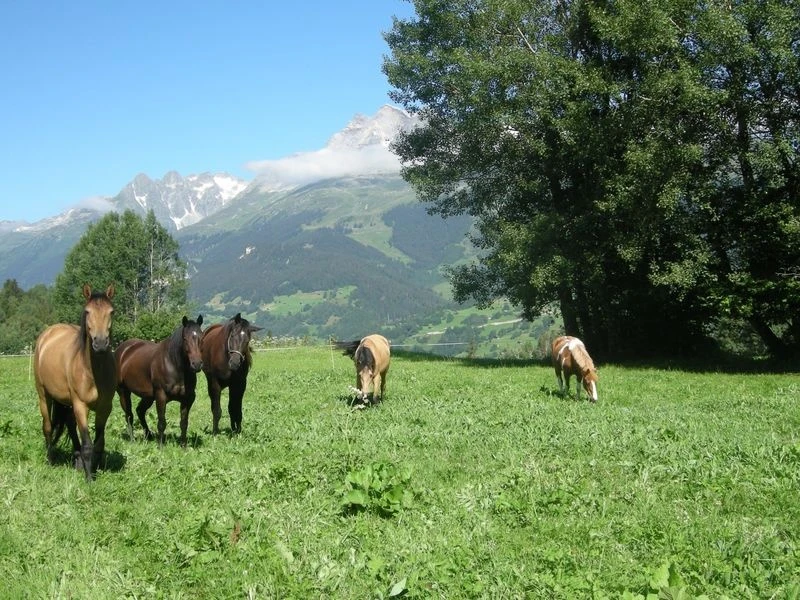 Bei einem Spaziergang entlang der Reitanlage können Gäste die Pferde gut beobachten. Einige der Tiere gehören zur Pension. Die Pferde geniessen hier im Sommer die grosse Weiden. Nebst ihren Freilaufboxen freuen sich die Tiere auch im Winter auf einem grosszügigen Auslauf und toben sich im Schnee vollends aus. Somit können die Pferde in einer wundervollen Umgebung altern.