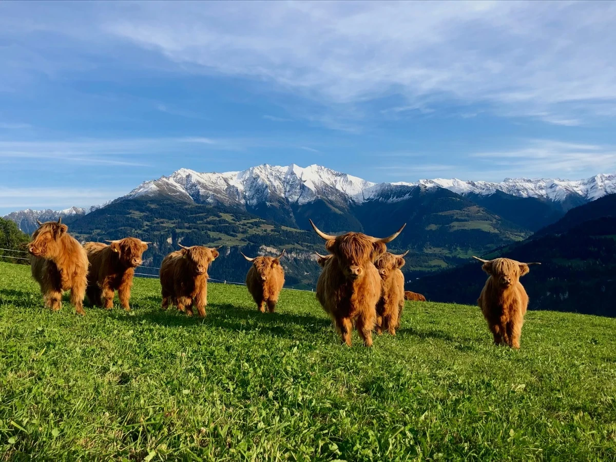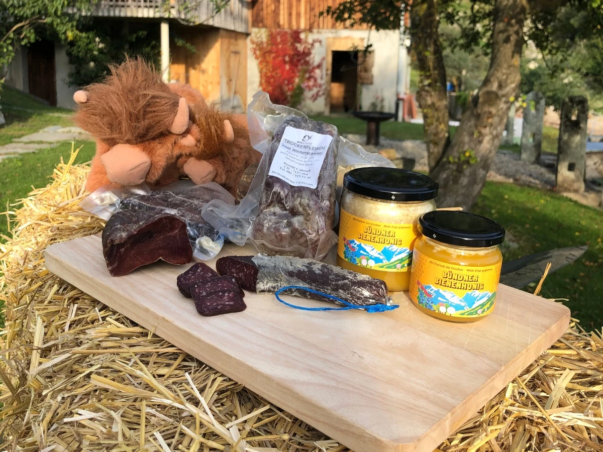 Geniesse unsere eigenen, kleinen Hofspezialitäten und einen wunderschönen Ausblick auf das Bergpanorama.