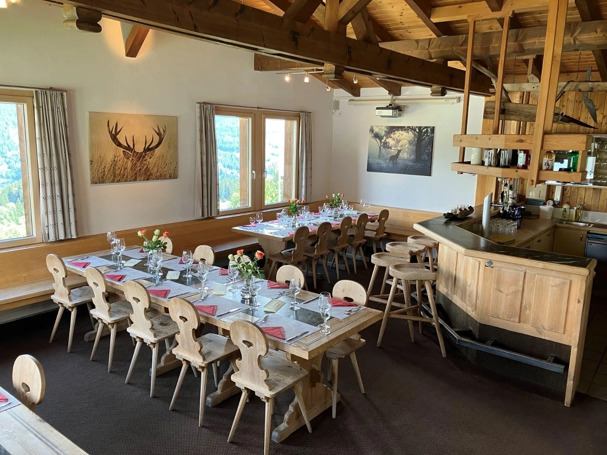 Mit einem Kaffee in den Tag starten, die Freunde zum Mittagessen treffen, auf der grossen Terrrasse bei einem Glas Wein die Sonne geniessen und den Tag mit einem feinen Menu und atemberaubender Aussicht im wunderschönen Restaurant ausklingen lassen. Das alles bieten wir Ihnen im Restaurant Talstation Valata! Möchten Sie länger bleiben? Übernachtungsmöglichkeiten: zwei Familienzimmer à 4 und 5 Personen, sowie 3 1/2 Zimmer Wohnung für max. 6 Personen. Wir freuen uns auf Sie! Anzahl Sitzplätze innen 100 (70 Restaurant, 30 Stübli)