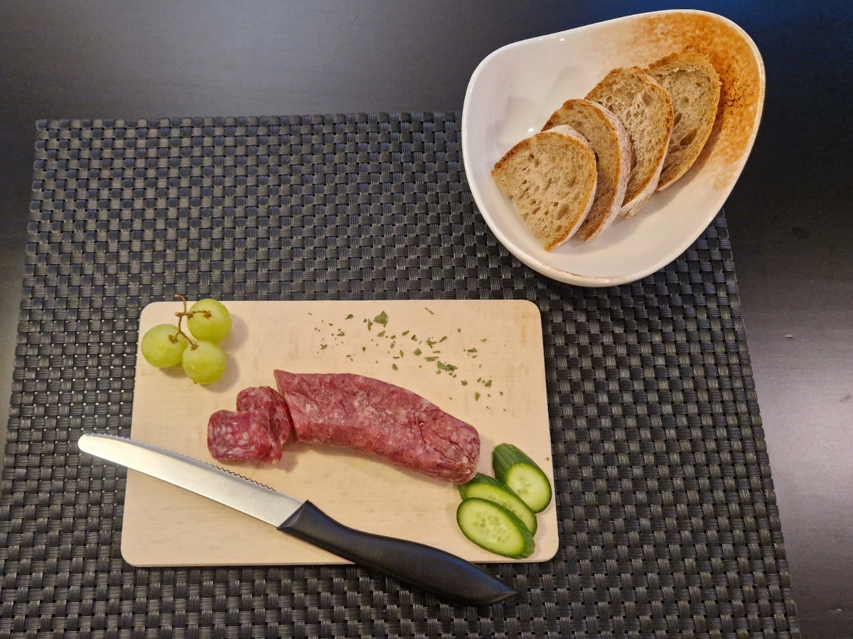 Nebst feinen Spirituosen gibt's auch kleine Häppchen - sozusagen regionale Tapas.