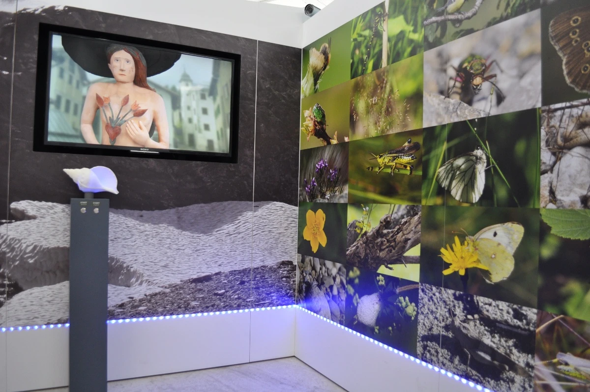 Als Gastgeberin nimmt die exotische Brunnen-Nixe vom Holzbrunnen vom Dorfplatz die Besucher/innen mit auf eine Entdeckungsreise durch die verschiedenen Lebensräume und gibt Einblicke in eine faszinierende Artenvielfalt und eindrücklich schöne Kultur- und Naturlandschaft. Die in Szene gesetzte Flora und Fauna fasziniert und lockt nach draussen, die Natur im Safiental und die Rheinschlucht aufzuspüren und zu erkunden.