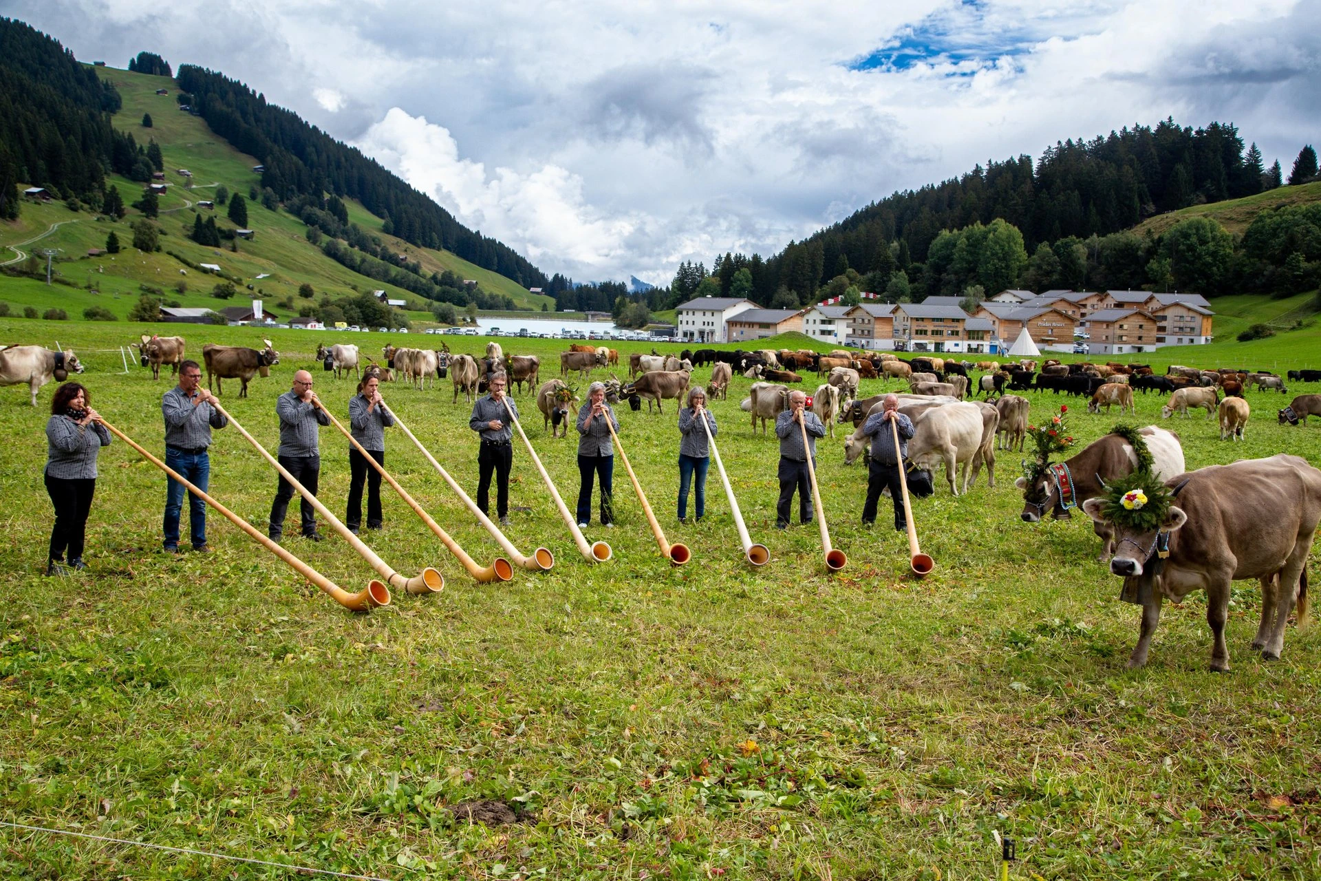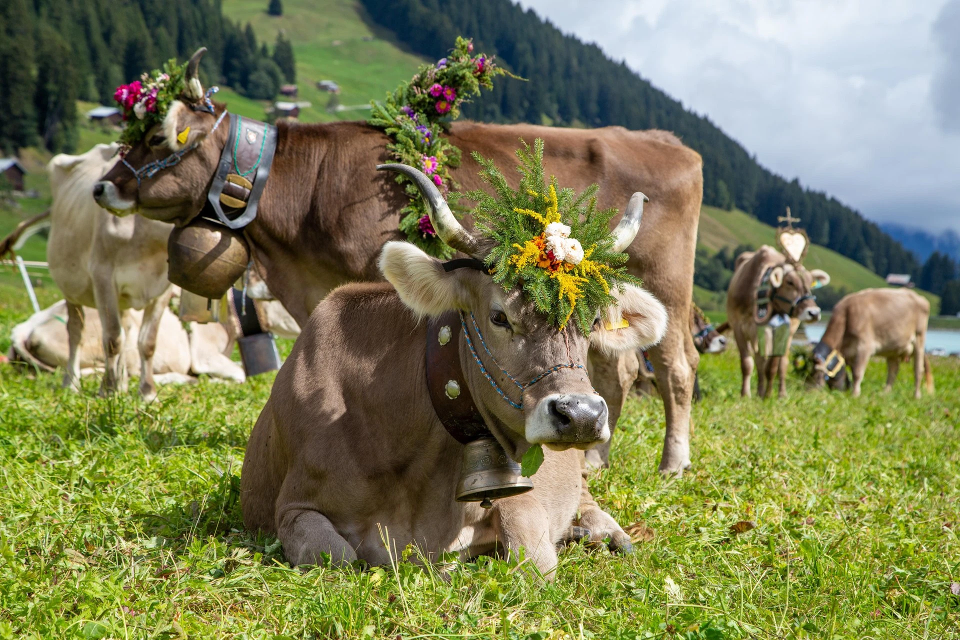 - Besonders stolz sind die Bauern auf ihre Kühe: Jedes Jahr werden die zwei besten Milchkühe mit dem Titel „Miseriera“ ausgezeichnet. Diese dürfen den Alpabzug mit einer kleinen, geschmückten Tanne auf dem Kopf begleiten – auch dieses Jahr werden die „Miseriera“ zu sehen sein.