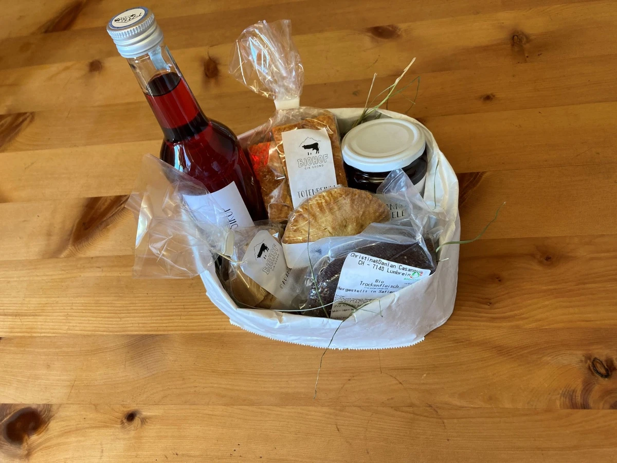 Der Biohof Gir Grond liegt am oberen Dorfrand von Lumbrein. Im Hofladen werden Biojungrindfleisch aber auch andere Produkte wie Salsiz, Fleischkäse oder selbstgemachte Nusstorten.Der Selbstbedienungsladen ist 24 Std. an 7 Tage in der Woche zugänglich. TWINT Zahlung möglich.